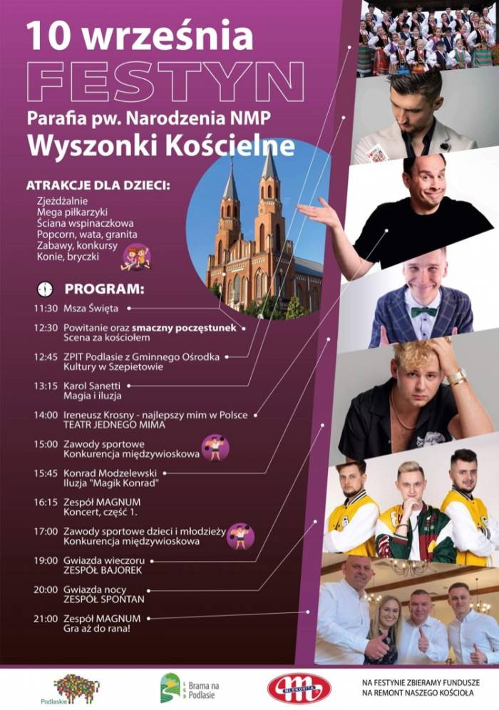 Festyn w Wyszonkach Kościelnych - 10.09.2023 r. - program: