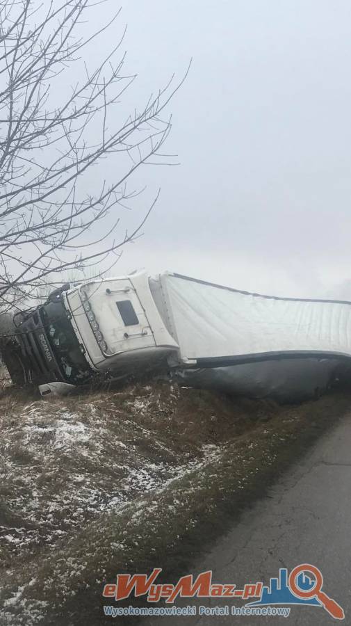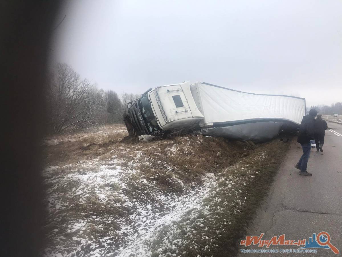 Zdjęcia Ciężarówka na boku, kierowca nietrzeźwy [FOTO + aktualizacja] - fotorelacja