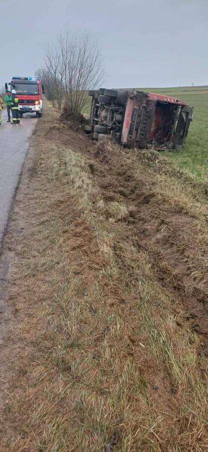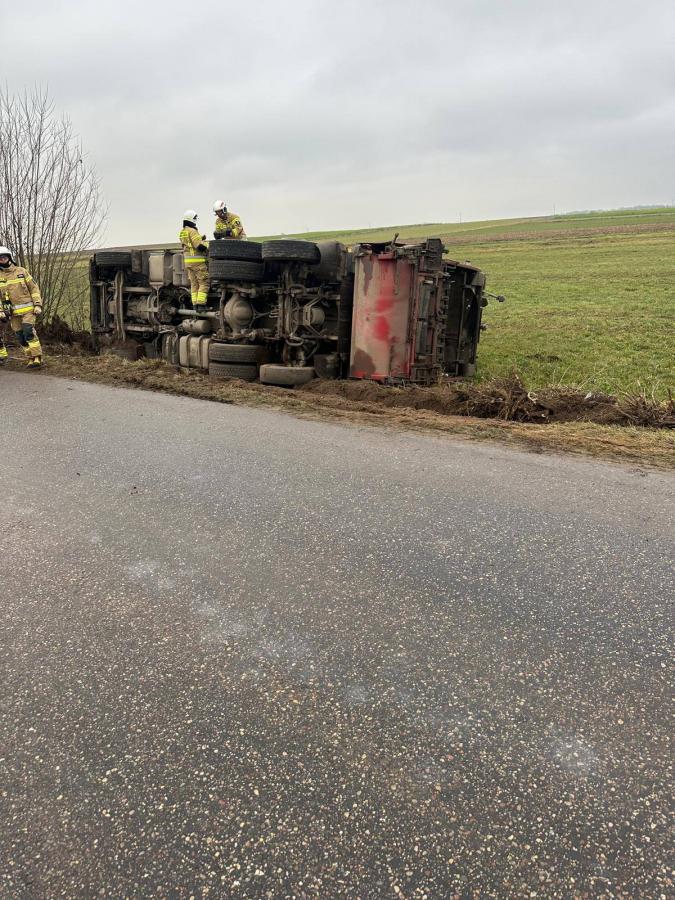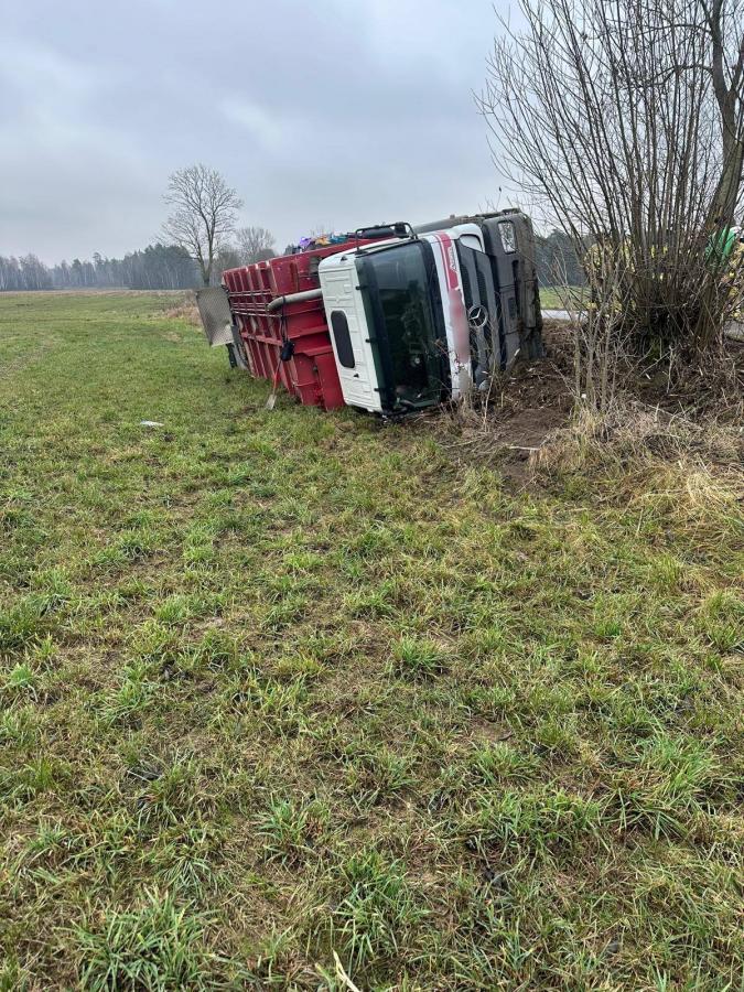 Śmieciarka przewróciła się na bok w Kobylinie-Borzymach [foto]
