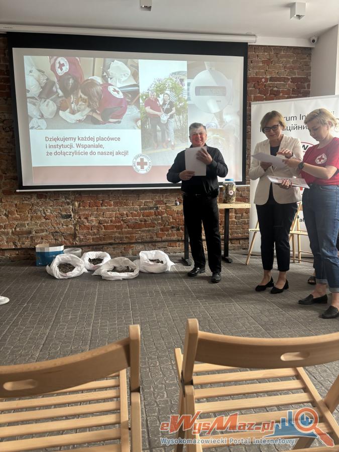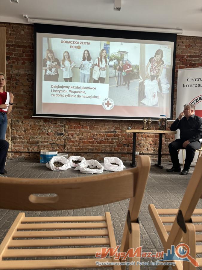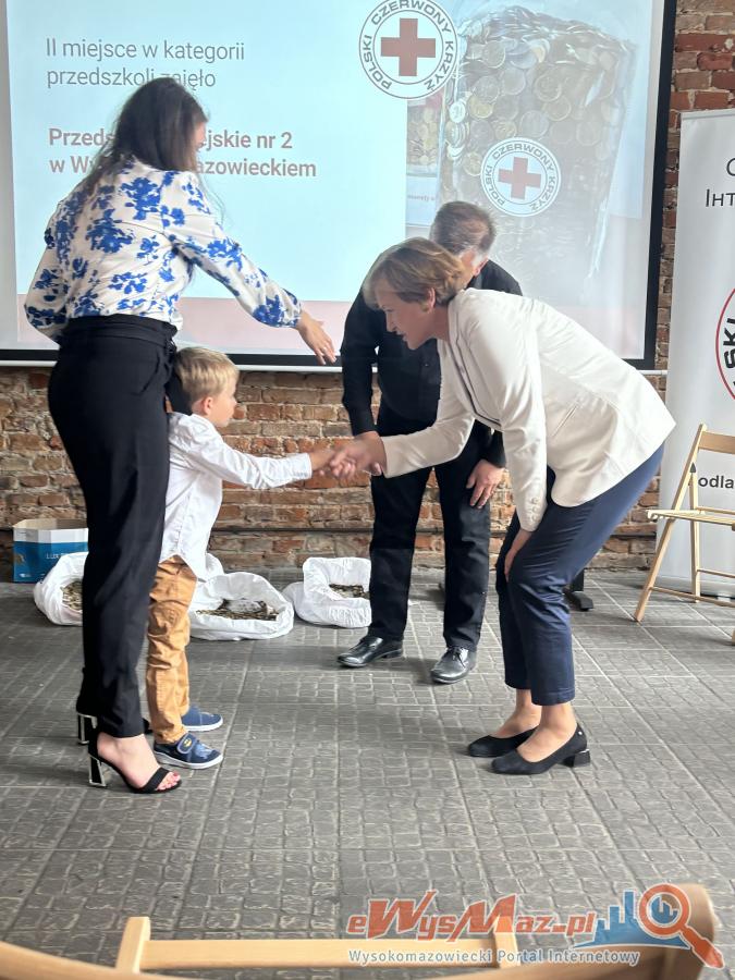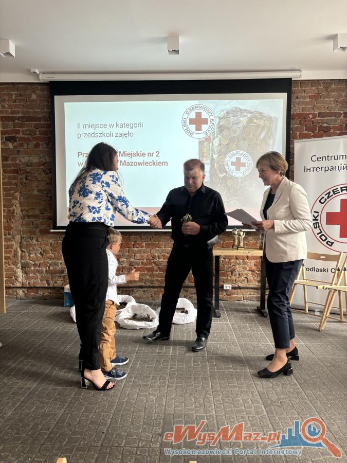 Uroczyste podsumowanie akcji Gorączka Złota w Podlaskim Oddziale Polskiego Czerwonego Krzyża. Przedszkole Miejskie nr 2 w Wysokiem Mazowieckiem zajęło II miejsce, zbierając 72,25 kg monet na pomoc dzieciom. Najważniejsze jest zaangażowanie - każda moneta ma znaczenie. Dziękujemy wszystkim za wsparcie i dobre serce!
