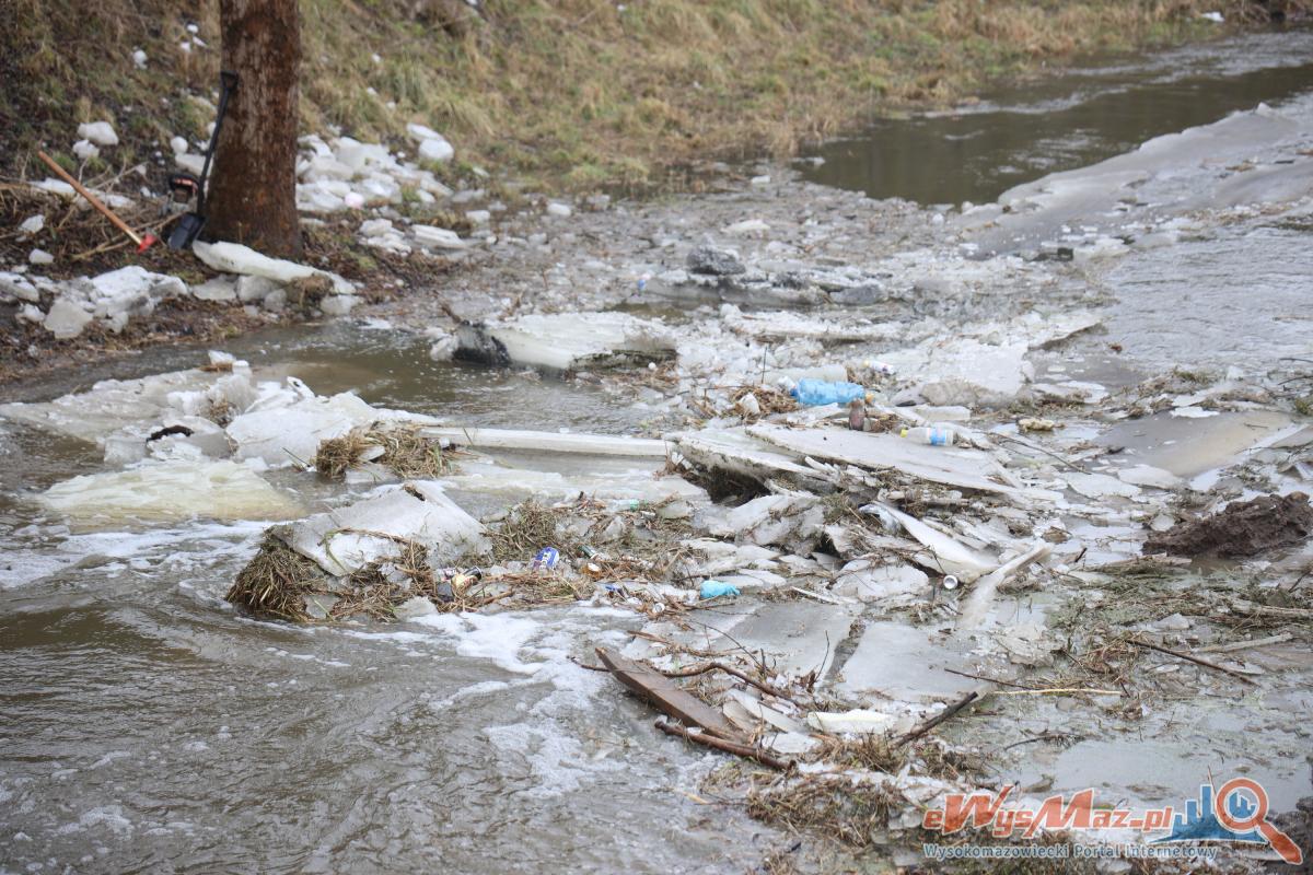 Zator lodowy na rzece Brok. Strażacy i ciężki sprzęt pracują przy ul. Jagiellońskiej [FOTO + VIDEO]