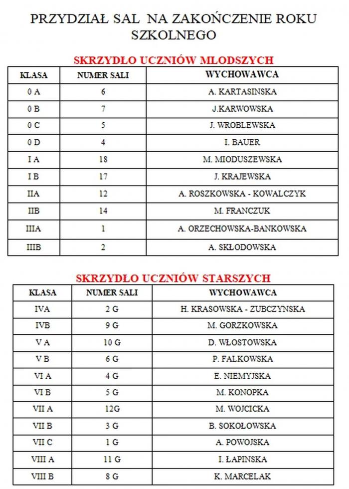 26.06.2024 r. (czwartek) - klasy VIII - godz. 17:00