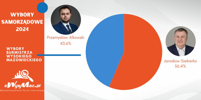Potwierdziły się nasze wcześniejsze nieoficjalne informacje. Jarosław Siekierko, który rządzi miastem Wysokie Mazowieckie od ponad 25 lat, startując z własnego komitetu wygrał kolejne wybory na stanowisko burmistrza. Pokonał jedynego rywala, startującego z KWW Wspólna Przyszłość Miasta - Przemysława Alkowskiego. Tak wynika z oficjalnych danych udostępnionych przez Państwową Komisję Wyborczą.