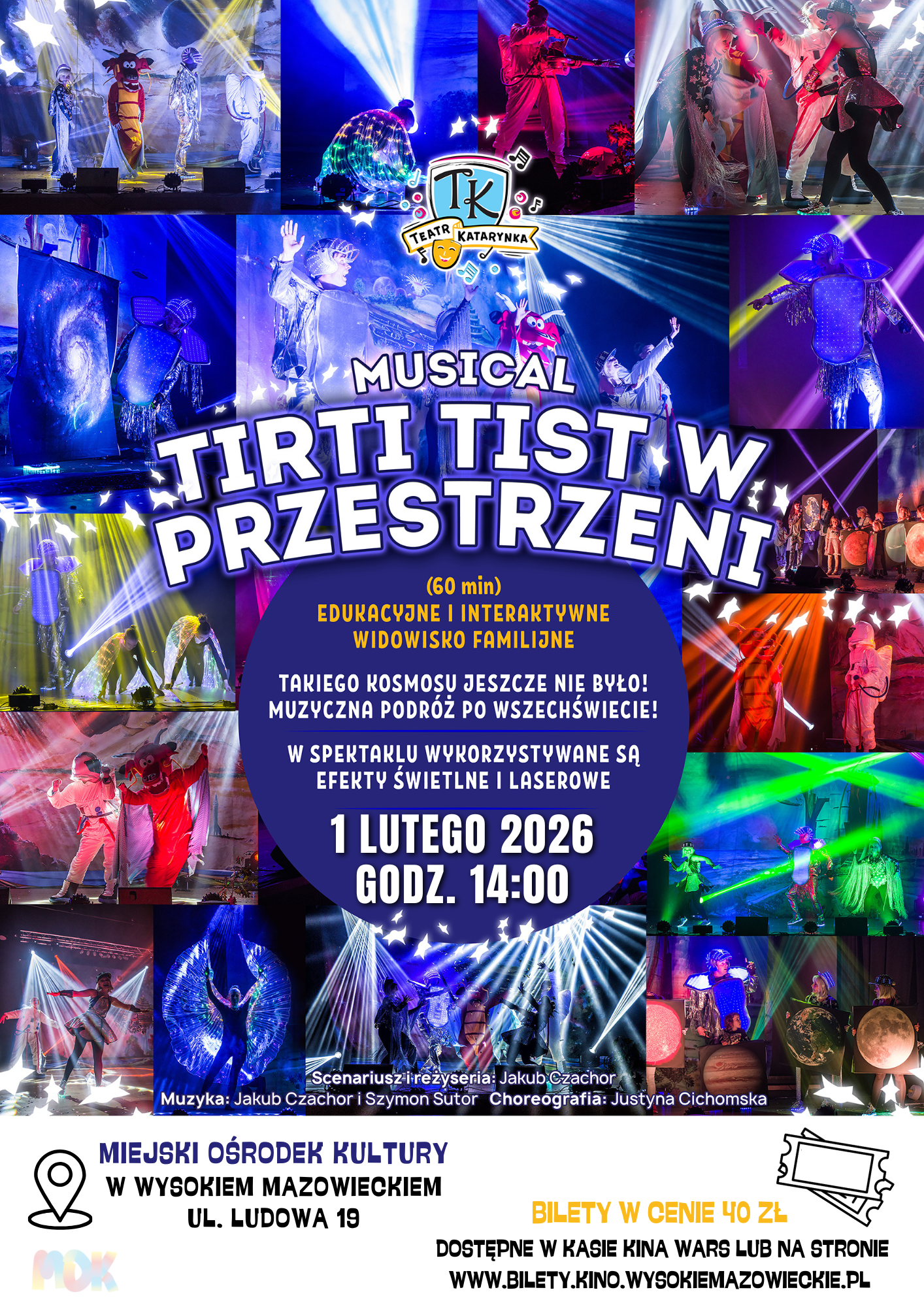 Już 1 lutego 2026 roku o godzinie 14:00 w sali widowiskowo-kinowej MOK odbędzie się musical dla dzieci pt. „Tirti Tist w Przestrzeni”.