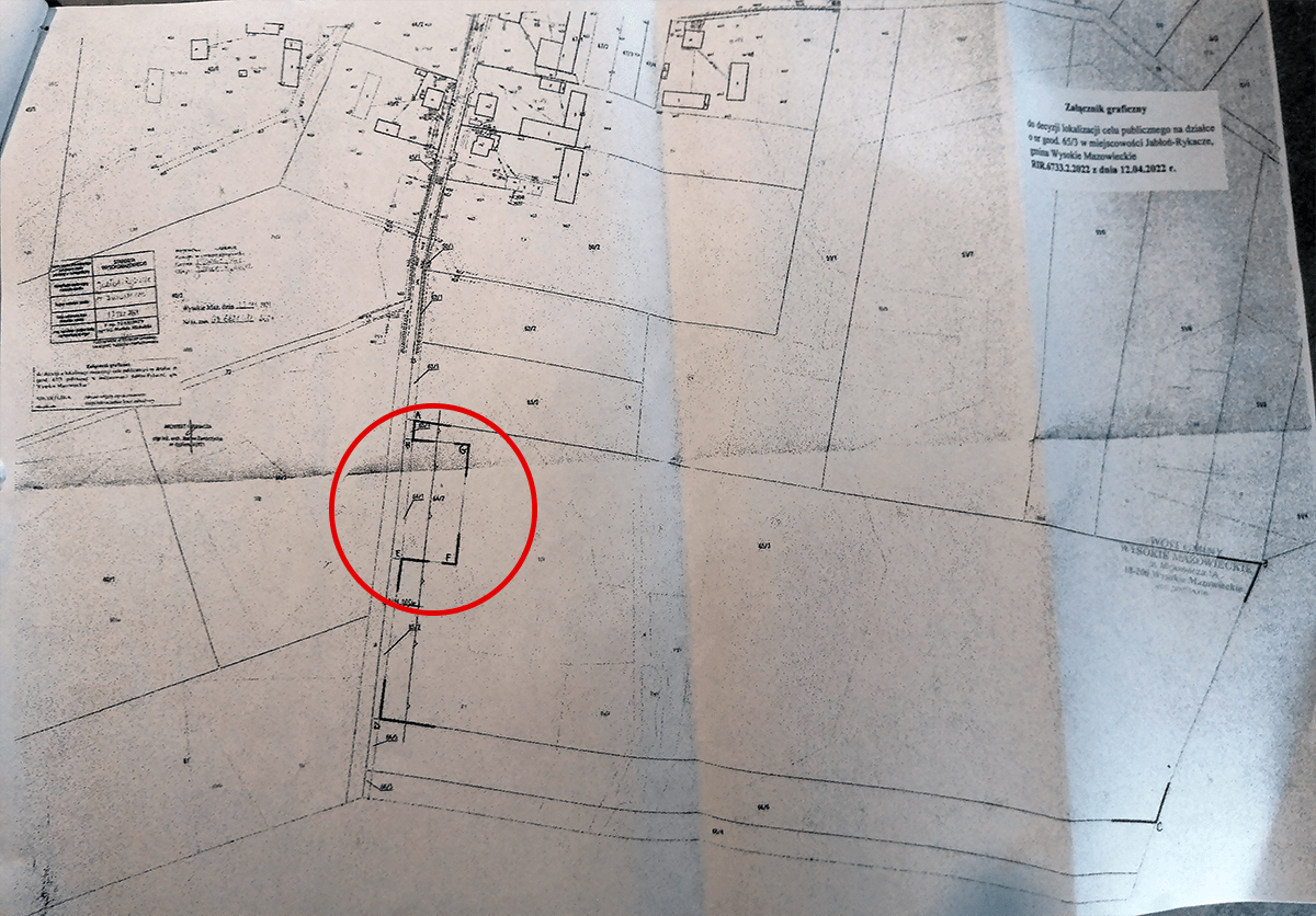 Załącznik graficzny do decyzji lokalizacji celu publicznego na jednej z działek w miejscowości Jabłoń-Rykacze