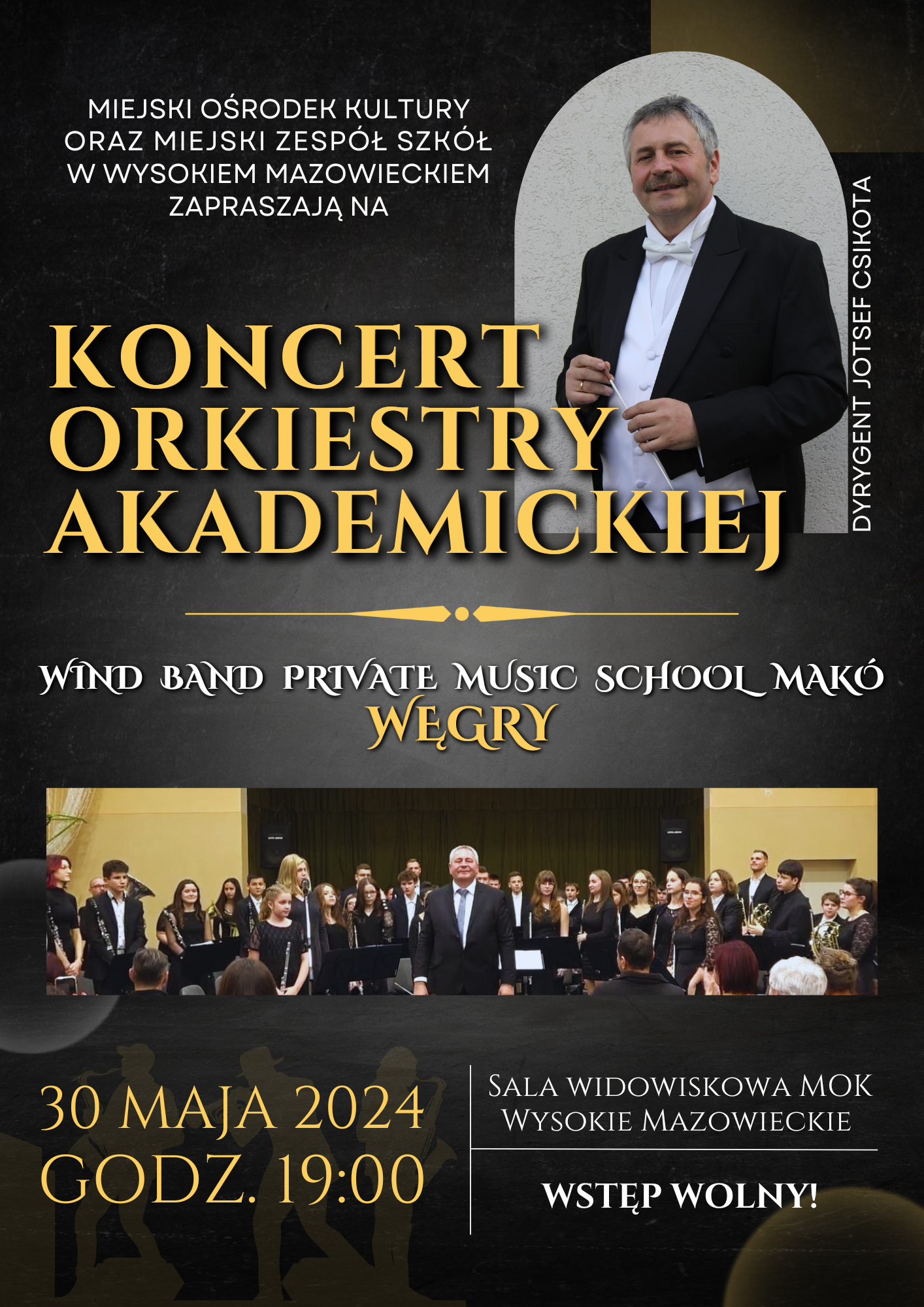 Miejski Ośrodek Kultury oraz Miejski Zespół Szkół w Wysokiem Mazowieckiem zapraszają na koncert Akademickiej Orkiestry Dętej. Przed publicznością wystąpi skład z Makó, działający na Węgrzech.