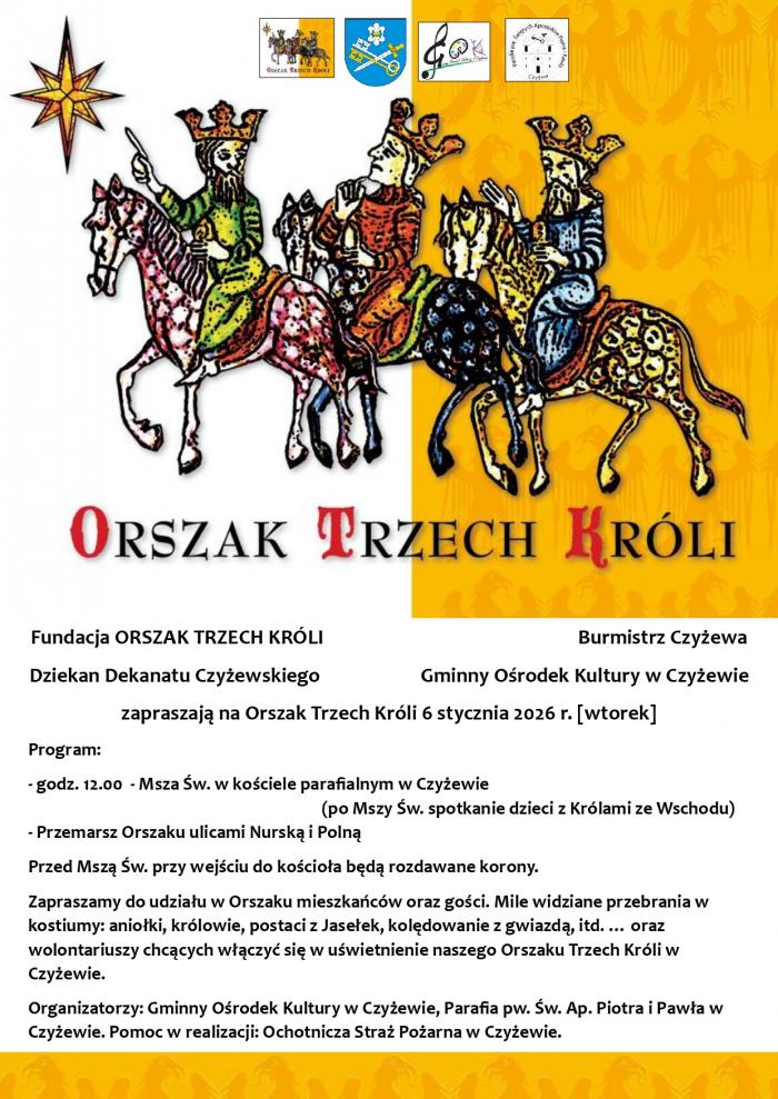 W Czyżewie świętowanie rozpocznie Msza Święta o godz. 12:00 w Kościele pw. św. Ap. Piotra i Pawła, a po niej spotkanie dzieci z Królami ze Wschodu. Następnie zaplanowano wspólny przemarsz ulicami Nurską i Polną.