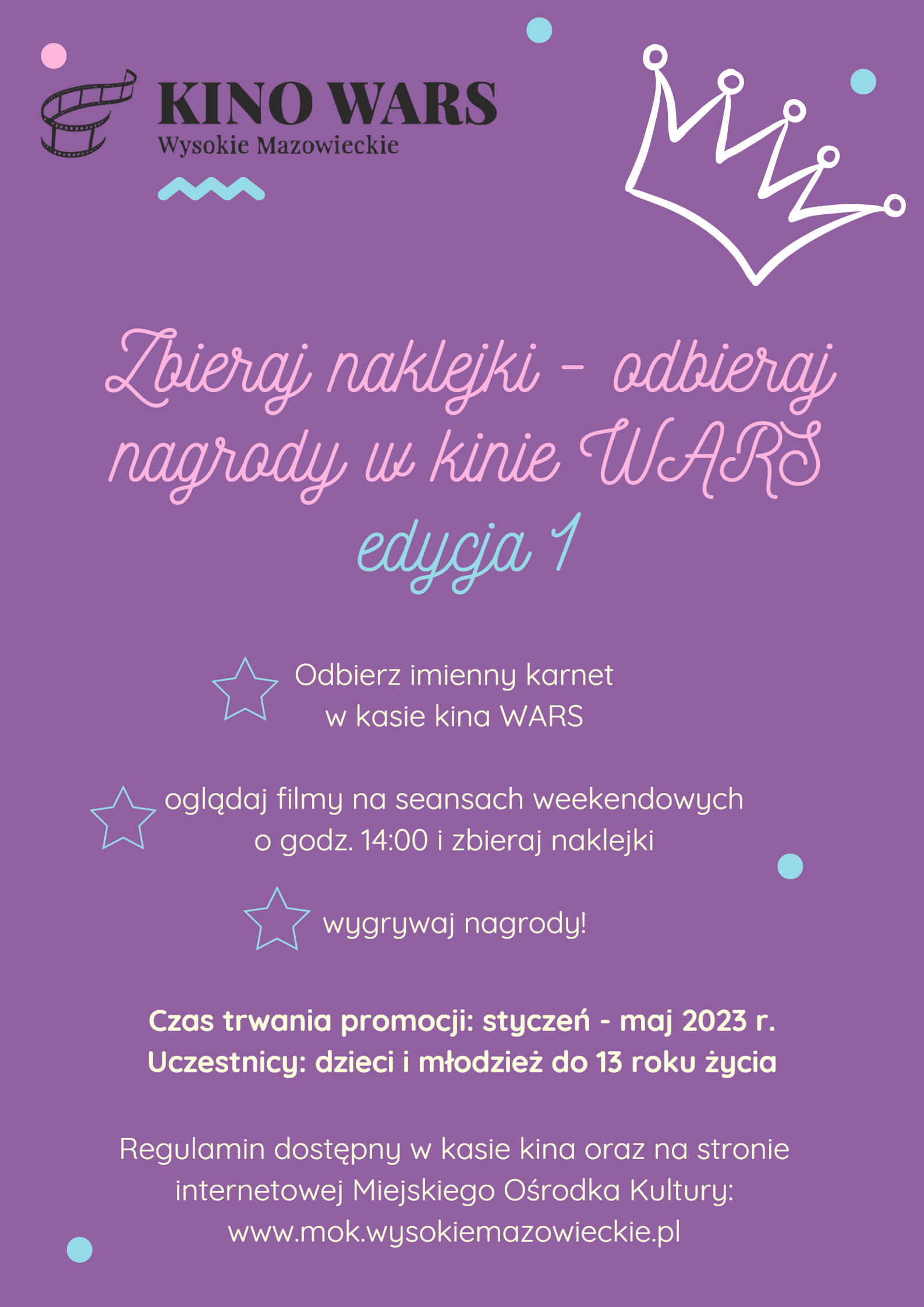 Kino WARS w Wysokiem Mazowieckiem zachęca dzieci i młodzież do 13. roku życia do udziału w pierwszej edycji akcji "Zbieraj naklejki - odbieraj nagrody".